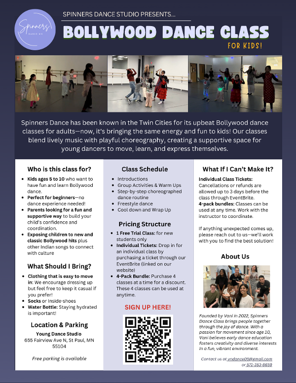 Hi everyone!!! Last month we started a Bollywood Dance Class for kids ages 5 to 10 and it's been a hit :) It's a great way to meet other parents and build community. Wanted to continue getting the word out and let you know that your first class is completely free!